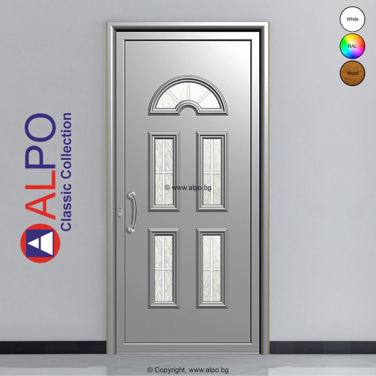 Алуминиев панел за врата ALPO Classic Collection №2204 с пет стъклопакета „Бял растер“