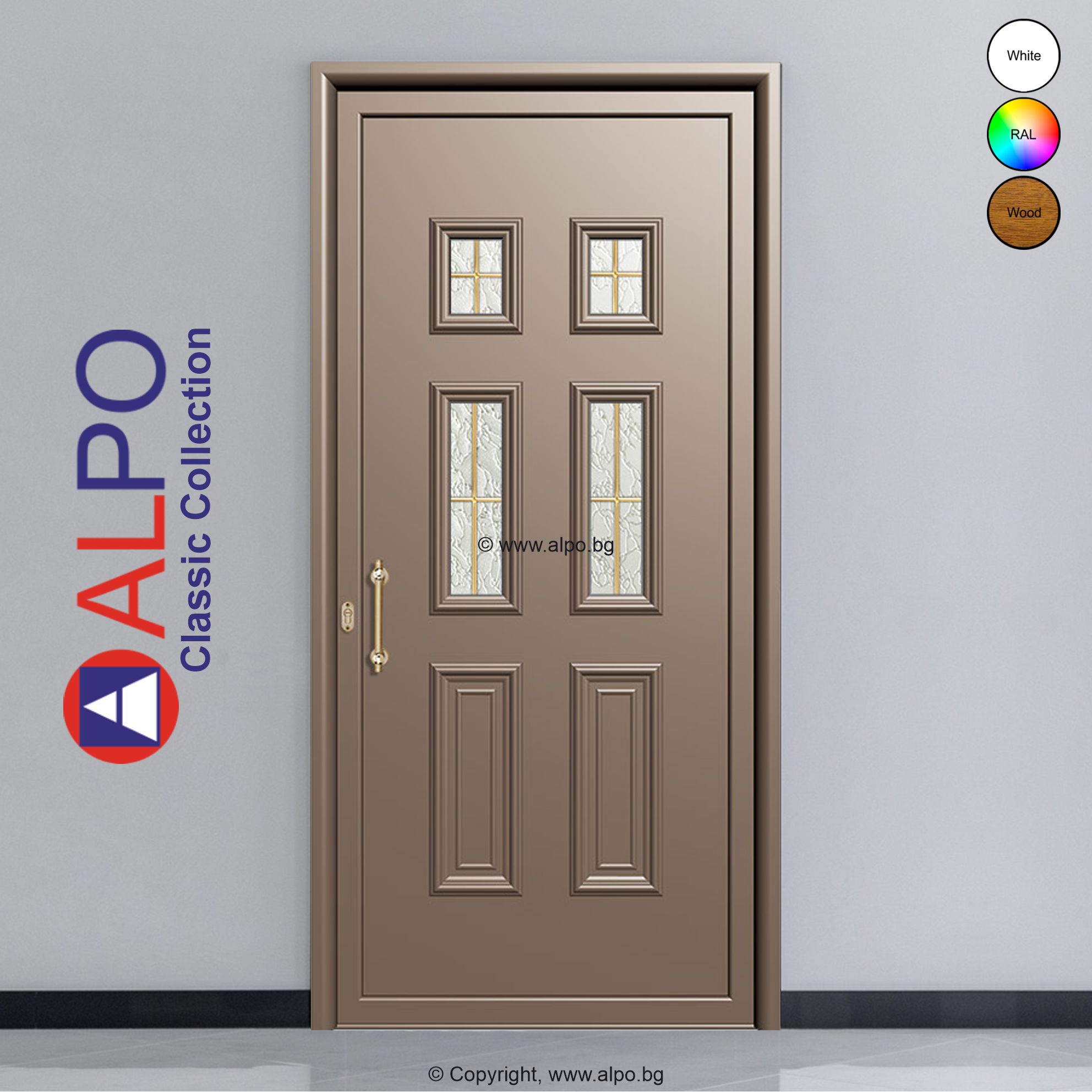 Алуминиев панел за врата ALPO Classic Collection №2504 с четири стъклопакета „Златист растер“