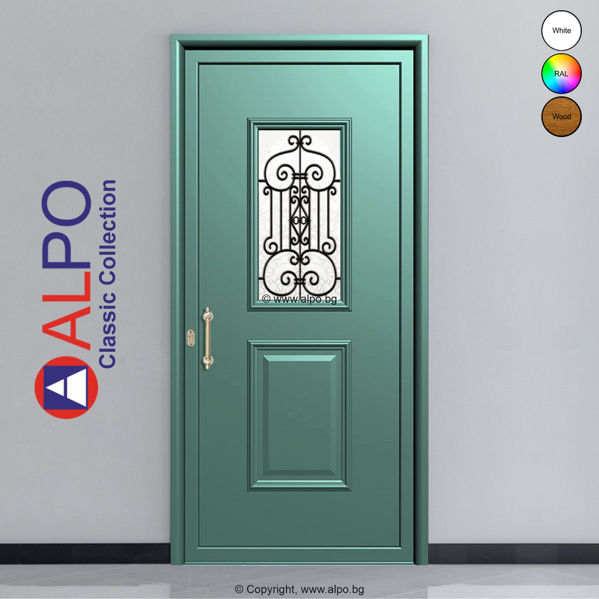 Алуминиев панел за врата ALPO Classic Collection №2912 с един стъклопакет „Ковано желязо“