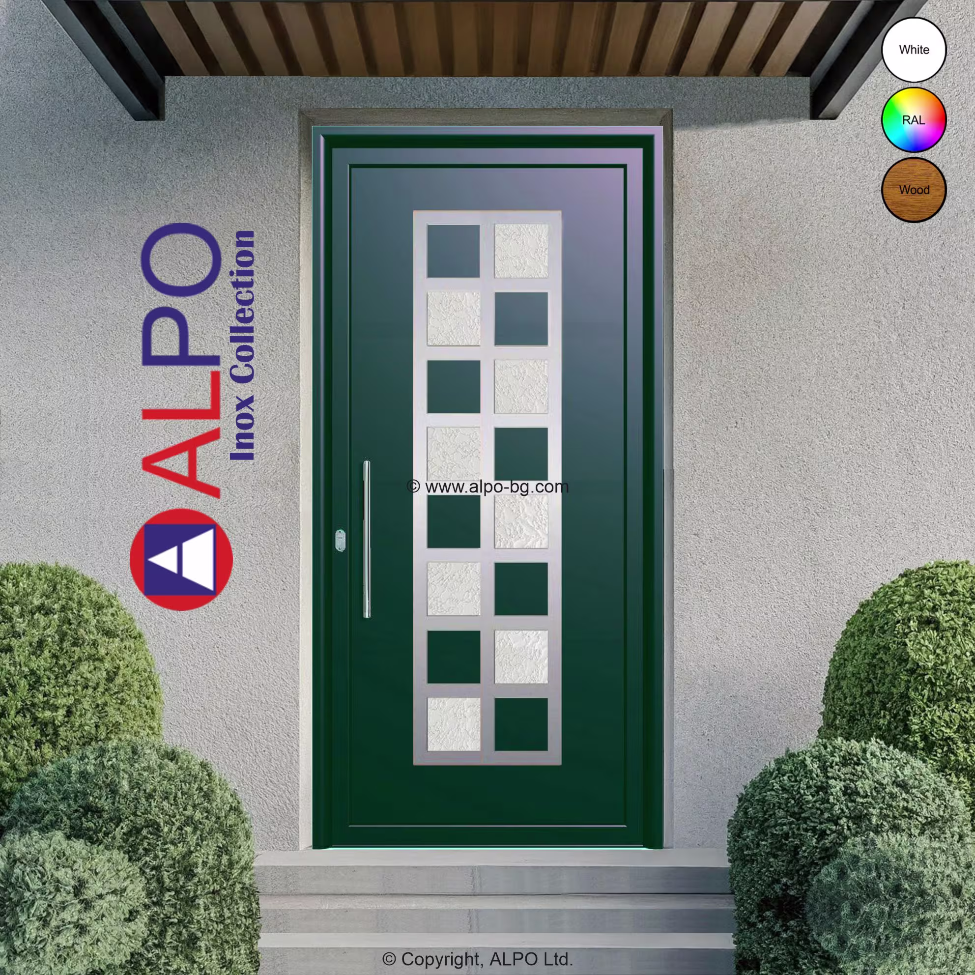 Предлагаме нашите панели за врати във всички RAL цветове, както и в разнообразие от дървесни декори. Панелите могат да бъдат изработени в различни дебелини от 12 мм до над 180 мм, гарантиращи съвместимост с всяка една профилна система. Панелите се произвеждат от нас, което ни прави гъвкави при задоволяването на всички нужди на клиентите ни в кратки срокове.