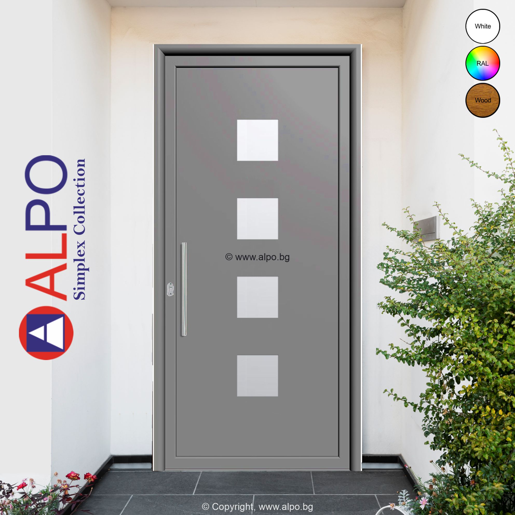 Алуминиев панел за врата ALPO Simplex Collection №8061 с четири стъклопакета „Мат“